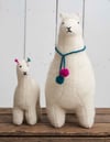 Knitted in fluffy Rowan Alpaca Classic, Colin’s ear tufts coordinate with his mum’s pom pom neck tie.